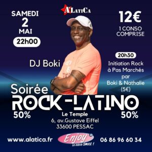 Soirées SBK-Rock Tous les mercredis soir de l’année, même une partie de l’été. Fermé de mi-juillet à mi-août De 22h00 jusqu’à 2h00 du matin. Animation en alternance tous les 15 jours : dj Boki / dj Frédo Salle Le Temple 6, avenue Gustave Eiffel à Bordeaux/Pessac Rocade Sortie 14 Prix : 5 € Une Conso, soft ou bière, comprise. Au Programme : 2 Salles / 2 Ambiances – Grande Salle : Salsa, Bachata, Kizomba, Rock. – Petite Salle : Zouk-Kompa